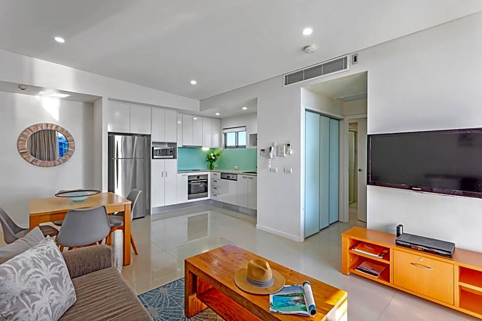 This air-conditioned apartment features a private balcony with interupted ocean views, and full kitchen and laundry facilities
